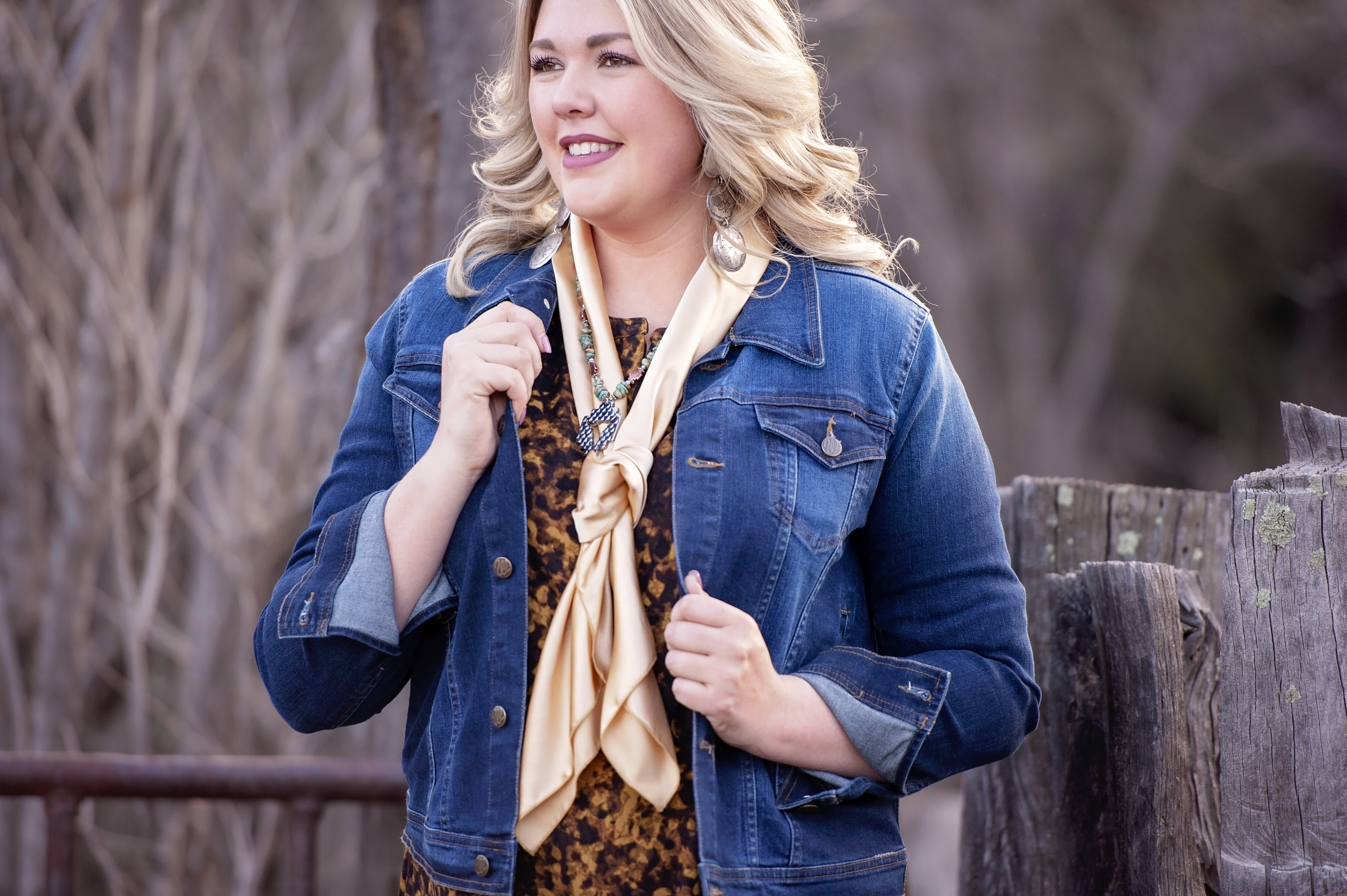 First up, the simplest way to quickly add a layered affect & some bling! I love layering necklaces on my wild rags, especially on solid silk, because that gives your favorite necklaces a real showcase to shine! They stand out from your outfit to grab some attention & get noticed!